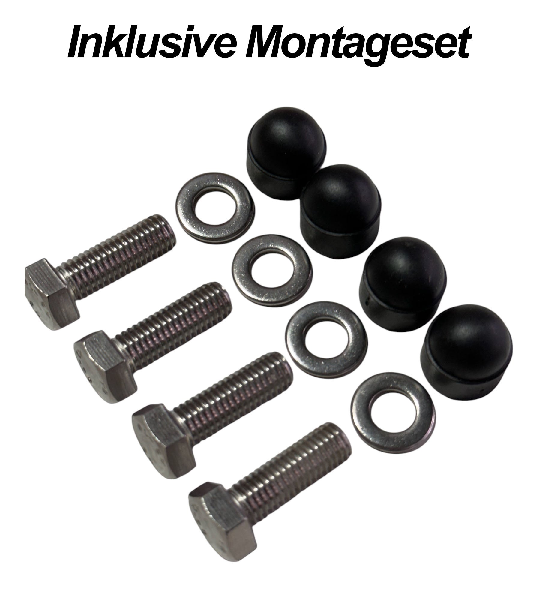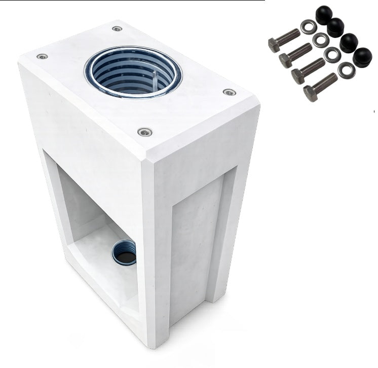 1x Betonfundament, Befestigungsmaterial, 4x Edelstahl Schrauben, 4x Edelstahlscheiben, 4x Schraubenabdeckungen